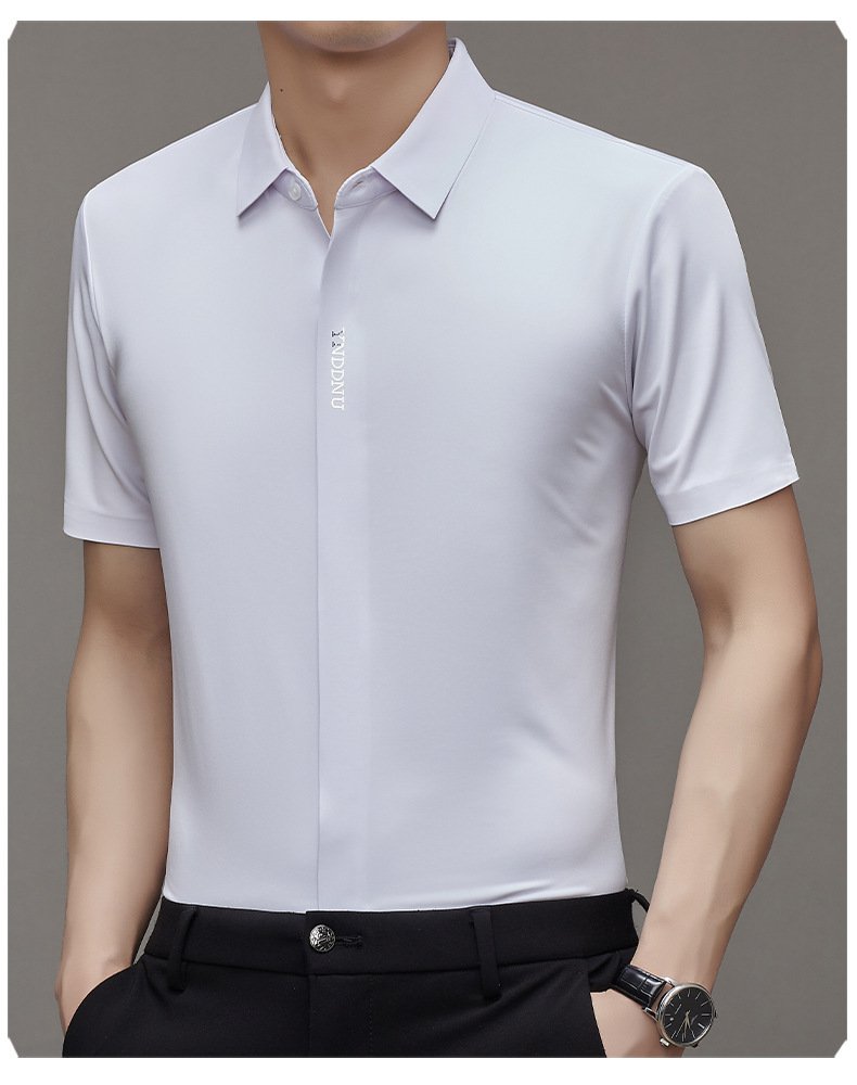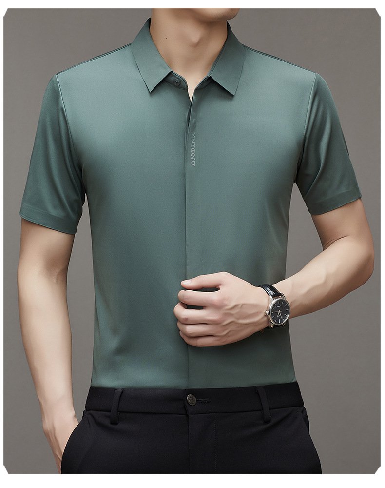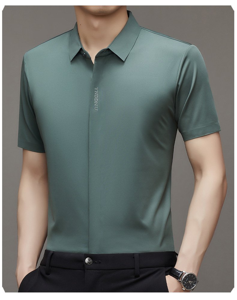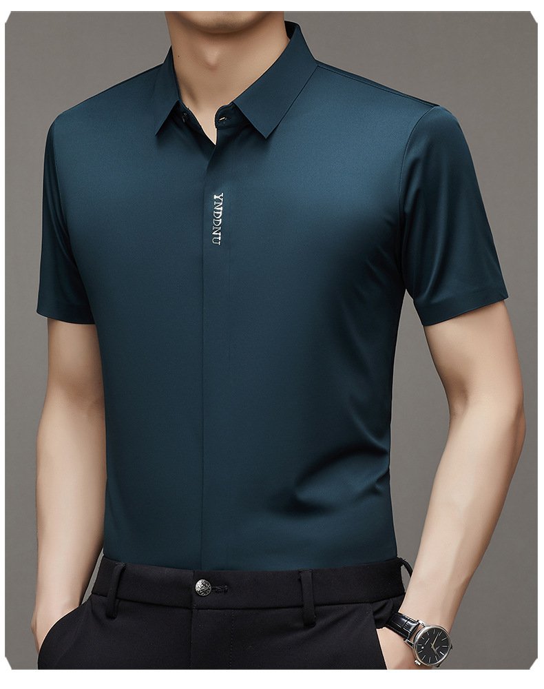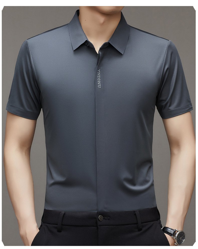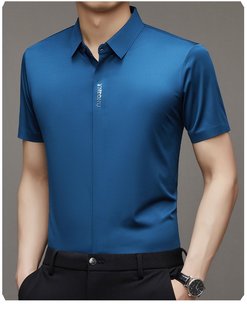 ビジネスメンズファッションシャツ 中年男性用ノンマーキング高弾性アイスシルク半袖シャツ サマーファッション・ビジネスシャツ