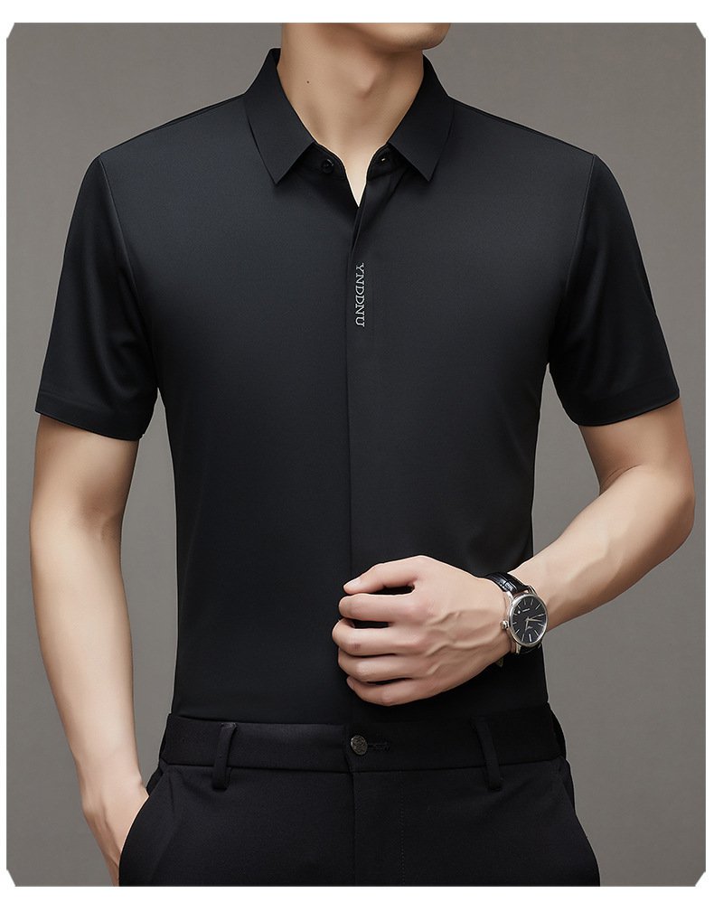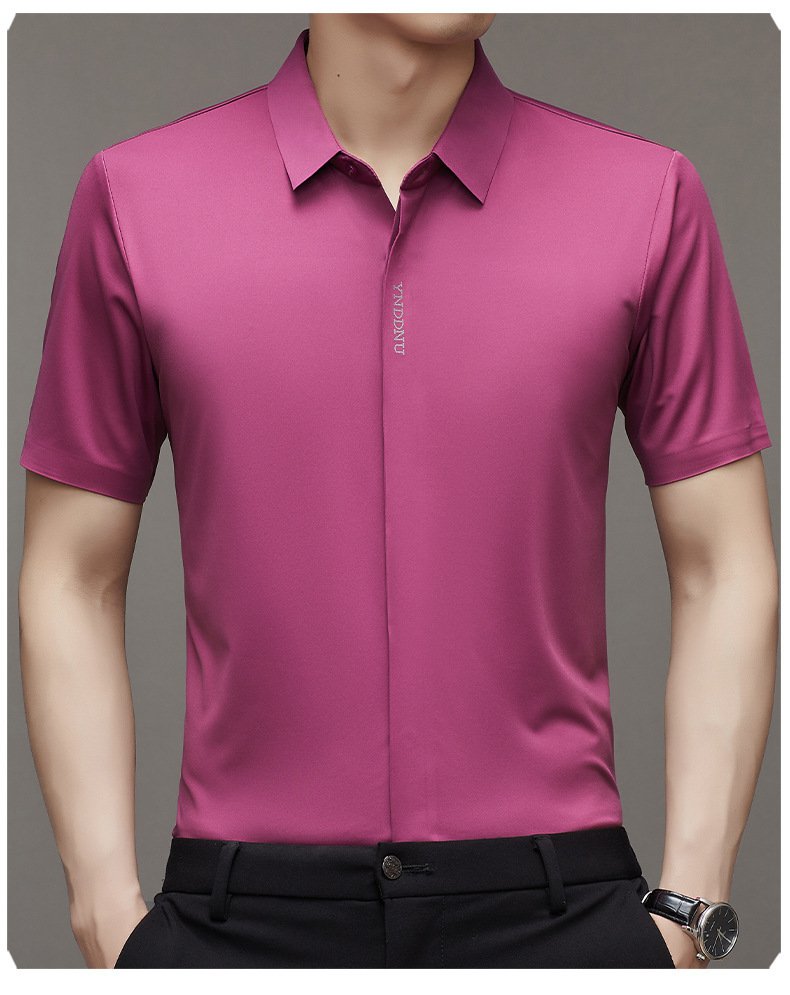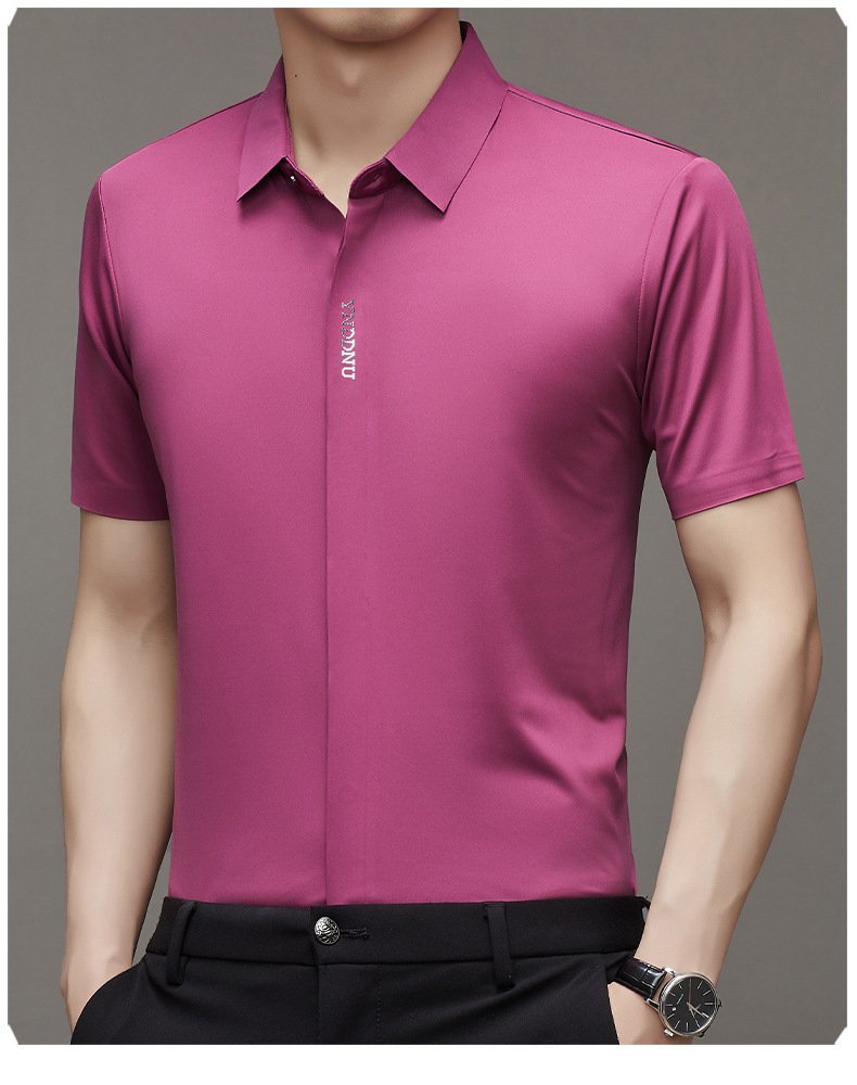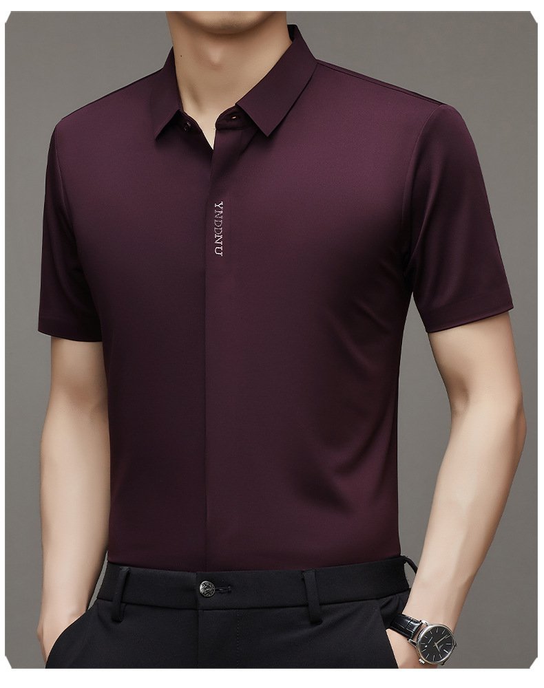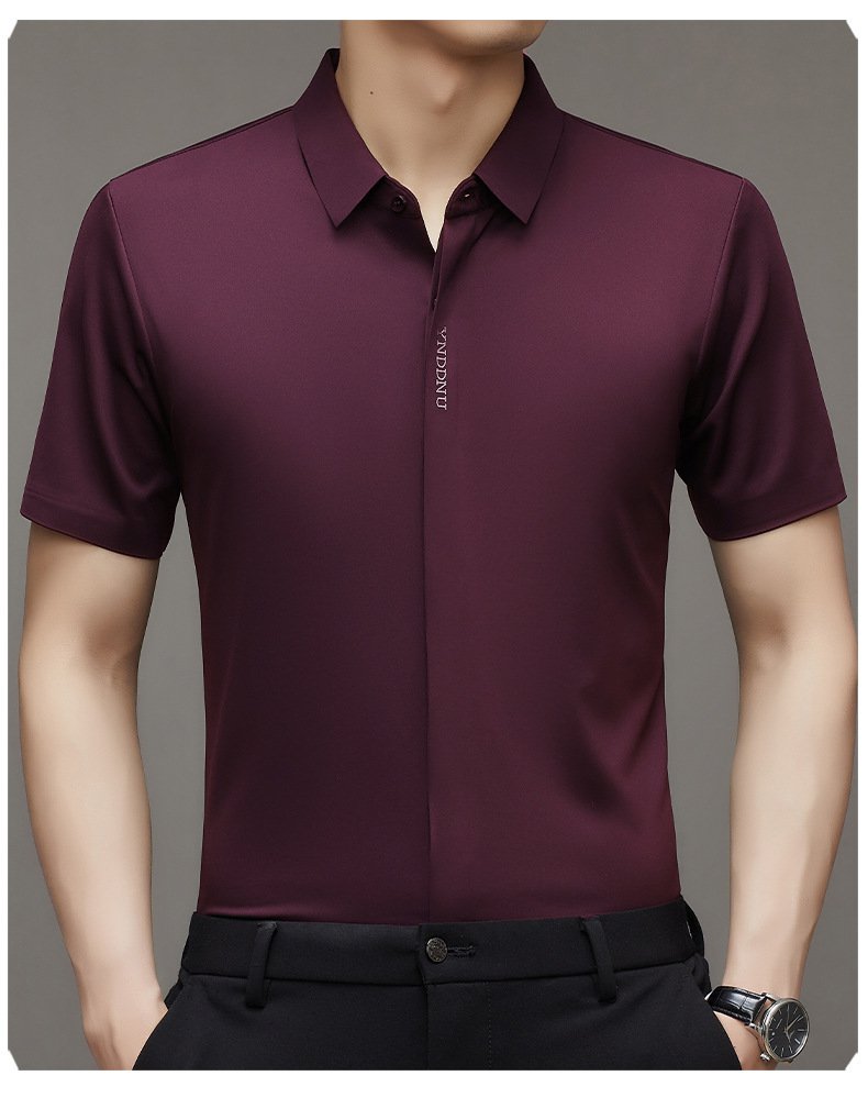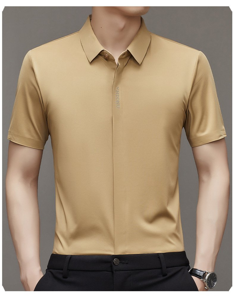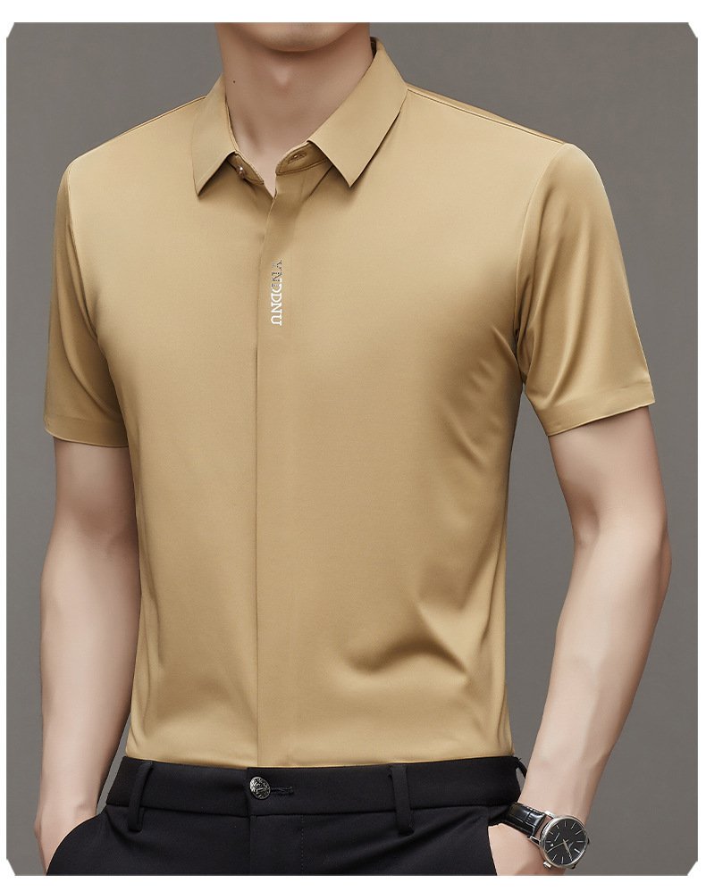 ビジネスメンズファッションシャツ 中年男性用ノンマーキング高弾性アイスシルク半袖シャツ サマーファッション・ビジネスシャツ